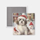 Este design festivo captura o espírito alegre da época de férias, apresentando um adorável filhote vestindo um chapéu de Papai Noel. O cachorro está aninhado numa terra maravilhosa de inverno, completo com um boneco de neve, uma árvore de Natal decorada, e presentes lindamente envoltos. Os flocos de neve caem suavemente, acrescentando um toque mágico à cena, enquanto as cores vibrantes das decorações de férias criam uma atmosfera quente e alegre.