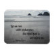 Praia da Costa do Pacífico, com água e rochas em fundo e Bíblia Verso de perseverança: "Vamos correr com resistência a corrida que está diante de nós. Hebraico 12:1"