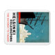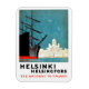 Magneta Helsínquia. Barcos no porto da cidade com prédios da cidade atrás. poster de viagens vintage no seu novo ímã.