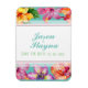 Flores bonito e coloridas de hibiscos tropicais em fundo aqua como bordas de cima e de baixo com aqua central e texto verde personalizável para personalizar detalhes de casais engajados