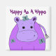 Um legal hipopótamo roxo com um ditado fofo. Pequenas borboletas azuis pousando no hipopótamo.