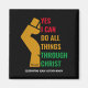 Espantoso MÊS DE HISTÓRIA NEGRA Cristã Sim, posso ímpar com TEXTO PERSONALIZÁVEL. Design mostra meio punho de energia e SIM POSSO FAZER TUDO ATRAVÉS do CRISTO que é baseado em Philippians 4:13. O texto está em negrito vermelho, dourado e tipografia verde (cores rasta), e no fundo há uma mensagem PERSONALIZÁVEL que diz "Celebrando a História Negra", onde você pode substituir pelo seu nome ou texto do alternativo. Este imã do Mês da História Negra é uma forma excelente de espalhar sua mensagem, especialmente durante a temporada do Mês da História Negra, e pode ser dado a amigos e clientes como presentes de favor em suas festas e celebrações. Versão pan-africana também disponível.