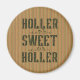 Uma imã de geladeira para aqueles que vivem no sertão. Texto "Holler Sweet Holler" nos tons de terra antigos, em fundo riscado