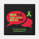 Esta é uma vibrante MAGNET REFRIGERADORA DE SAÚDE MENTAL com um esquema de cor vermelho e verde limão preto - a cor da Consciência da Saúde Mental. A design mostra as palavras HOMENS OMS TALK HEAL mesclado com dentro de SAÚDE MENTAL um gráfico de fala vermelha. A fita verde da Consciência Mental está no canto superior direito. Na base, há uma citação inspiradora baseada no Eclesiastes 3:7, que diz QUE É HORA DE FALAR. Este texto é PERSONALIZÁVEL, portanto você pode substituí-lo por um nome, uma citação ou um texto de sua própria escolha. A essência desta mensagem é um apelo motivacional à ação dos homens para que falem sobre a sua ansiedade, stress, depressão, pensamentos suicidas, etc., e façam um presente de excelente para Dias de os pais ou Aniversários, ou como um favor dado às Conferências de Homens, etc.