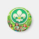 fundo verde vibrante com o emblema do movimento escoteiro e um grupo de escoteiros diversos se envolvendo em atividades. 😊