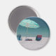 (produtos múltiplos selecionados) uma cena de praia com um bonito guarda-chuva colorido e um casal de cadeiras viradas para o Golfo do México na Ilha Sanibel, Flórida.