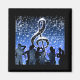 Azul, notas musicais e imagem de pessoas em um encontro.