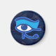 Magnet com Olho de Hóus, o símbolo da proteção no Egito Antigo. Este design de ímã apresenta o Olho de Hóspedes em tons azuis nos Olhos de Hóspedes desbotados no fundo.