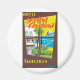 Viagens vintage do Hotel Reina Cristina em Algeciras, na Espanha do outro lado do porto de Gibraltar, ilustrado na janela.