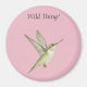 Um lápis a cores desenhando de uma fêmea Rúby Throat Hummingbird enfeita este ímã 'Wild Thing!'.