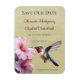 Anuncie seu próximo dia de casamento para a família e convidados com uma Imã salve a data Amarela de Hummingbird e Hibiscus. O design de ímã apresenta um par de flores brilhantes de hibisco rosa com um beija-flor arruinado. Personalize com os nomes do noivo e da noiva junto com a data do casamento. Papelaria de casamento e presentes disponíveis com esta design também.