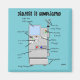Imã de máquina de diálise engraçada com setas nomeando humorosamente peças de máquina de diálise.