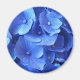 Ímago redondo azul escuro Hydrangeas. O ímã personalizável apresenta lindas flores azuis de hydrangea.
