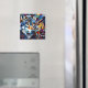 A vibrant colorful ai illustration of a wolf and an owl in a mosaic stained glass effect. A nice magnet to hang up your notes and pictures for those who love wildlife.