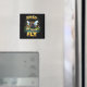 A cheerful cartoon fly with oversized red eyes stands proudly on a lily pad beneath a sparkling night sky, celebrating humor, confidence, and playful charm.