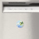 Praia Tropical. Iate no mar Palma num dia ensolarado. Aquarela. A ilustração da aquarela foi desenhada e digitalizada. A imagem será um bom presente e uma decoração interior maravilhosa.