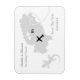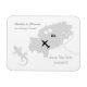 Cartão de imã salve a data de destino de na moda para casais que se casam em Ibiza. Com o símbolo lagarto da lagartixa, um mapa da silhueta de cinza prateada e corações de amor brancos. Muito bonito e fácil de personalizar com seus detalhes pessoais.