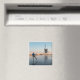 Fotoímã de Souvenir com um atleta patinando em um rio congelado passado por capas de fosco e um moinho de vento numa bela manhã de inverno nos Países Baixos.