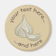 Lâmpada de alho com ícones de cravo com sombreamento de madeira. Dois campos de texto personalizados em círculo.