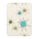 Este padrão Icônico de Starbursts Atômicos Flexível de Magnet apresenta explosões atômicas icônicas. Isso mesmo! A antiga escola, um fundo colorido creme com manchas de ouro é o pano de fundo perfeito para a vibrante tartaruga, aipo de salga, e círculos verdes cor de pera de cozinha. As manchas de cor são colocadas esporadicamente em vários tamanhos com linhas pretas em forma de V sobrepostas para formar as estórias do mod sputnik. Estimulado após um padrão prato de 1950, este design retrorinspirado tem tudo o que você precisa para ser verdadeiramente meio século moderno.
