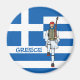 Ícone grego de guarda Evzone (tsolias) segurando uma arma, vestindo fez vermelho, fustanela e tsarouchia. Sinalizador de fundo de Grécia. Texto personalizado.