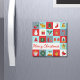 Feliz Natal Fúcil Retro Inverno Ícones do Natal Magnets Exibe o texto "Feliz Natal" na tipografia moderna de escrituras vermelhas, destacada com ícones de Natal como rena, árvore, estocagem, sinos, boneco de neve, presente, coroa, holly, estrela, cana-de-açúcar, pão-doce, anjo e muito mais. Projetado por feriados do Evco www.zazzzle.com/store/evcoholidays