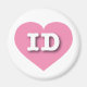 Este ímã apresenta um coração cor-de-rosa vibrante contendo a letra negrito, branca, maiúscula ID, a abreviação oficial de Idaho, o estado da joia.