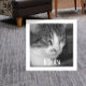 Fotografia de um gato branco e de mesa relaxada no pensamento com a palavra "Idiotas" impressa abaixo.
