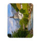 Imagem fotográfica retangular com uma paisagem com uma igreja ao lado de um riacho montanhoso com montanhas ao fundo dos Alpes, num dia de verão em Ramsau bei Berchtesgaden, na Baviera, Alemanha, ao lado da fronteira com a Áustria.