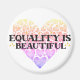 Espalhe uma mensagem poderosa com o nosso ímã "Igualdade é Bela", com um coração vibrante no arco-íris. Celebrar a diversidade e a inclusão no estilo, perfeita para qualquer superfície magnética. 🌈