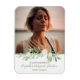 Simples e elegante, este elegante design floral é a forma perfeita de honrar um membro da família que passou recentemente. Apresenta rosas de marfim macio com folhas e folhagem verdes e macios. Toda a tipografia verde e marrom pode ser alterada para ajustado de seus detalhes memoriais. Substitua o modelo de foto por sua própria cor ou preto e branco para personalizar.