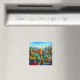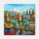 Esta cena clássica de Vancouver é o que você vê quando atravessa a ponte da rua Granville. Inclui o cenário montanhoso, um pouco do Parque Stanley, o terminal de ferries da Ilha de Granville, e a adorável ponte artística da Rua Burrard cercada por barcos e edifícios. Eu queria enfatizar o contraste entre os prédios de centro projetados uniformemente e reflexivos contra a comunidade neon-brilhante ex-industrial de Granville Island. Os prédios de centro sempre parecem altos e salgados, mas todos muito parecidos, como um campo de flores virando-se em direção ao sol enquanto a Ilha de Granville é toda irregular e brilhante.