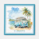 Este ímã personalizado costeiro apresenta um ônibus de van retrô em azul e branco com palmeiras tropicais. Personalize com sua escolha de nome ou texto especial.