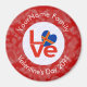 Outro ímã personalizado. Esta é uma das Ilhas Aland, ou Ilhas Aaland. A palavra LOVE mostra em letras vermelhas dentro um círculo branco e fractal. O círculo fica sobre um fundo vermelho e fractal. Perfeito para o Dia de os namorados. Divertido para os convidados a favor na sua festa.