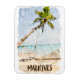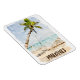 Linda paisagem das Maldivas mostrando a incrível praia e palmeiras da ilha no Oceano Índico. Funciona excelente como uma lembrança de férias e uma ideia de presente para cada turista.