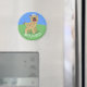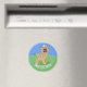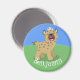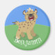 Esta hiena fofa está cheia de risadas! Desenhada em estilo de ilustração de desenho animado fofo em um fundo de grama verde. Hora do safari!