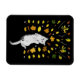 Gato branco com folhas de outono e ilustração preta de fundo.
