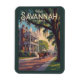 Design de viagem retro de Savannah. Savannah, Geórgia, é uma cidade histórica do sul conhecida por suas ruas ladeadas por carvalhos, arquitetura antebellum e charme costeiro.