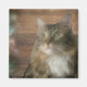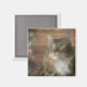 Este ímã personalizável apresenta uma foto de foco suave de um adorável gato de mesa de Maine com fundo natalino. Altere a foto para o seu próprio animal de estimação, adicione texto ou ambos.