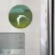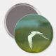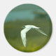 Andorinha-do-mar em voo sobre a marisma verde. As asas estão varrendo para baixo, revelando a cabeça preta no pássaro branco.