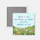 Um em uma série de ímãs com cenas paisagísticas e parafrase de versos Bíblias conhecidos. Esta porta copos usa a citação - "A paz não é a ausência de problemas, mas a presença de Deus". Também disponível em uma porta copos e caneca.