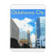 Imã de geladeira com um lindo horizonte de Oklahoma City com nuvens espertas e céus azuis lindos. Letra amarela complementa a imagem que apresenta vários edifícios bem conhecidos como vistos no Museu de Arte de Oklahoma