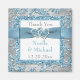 Este ímã de agradecimento para lembrança de casamento com padrão de damasco floral em brilho FALSO azul gelo, cinza prata e branco tem uma fita e laço azul IMPRESSOS com um par de jóias de coração unidas em brilho FALSO e diamante IMPRESSOS que combina com os convites de casamento mostrados abaixo. O texto é personalizável para que você possa alterá-lo para dizer o que quiser. Se você precisar de outros itens correspondentes neste design, envie um e-mail para niteowlstudio@gmail.com com sua solicitação.