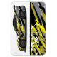Ímã mostrado com uma impressão artística de carro de corrida.