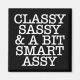 Girly-Girl-Graphics™ - Ímã de Classe, Sassy e Um Pouco Inteligente - Este texto simples, mas elegantemente lindo, com fonte de máquina de escrever branca, tipografia de citação engraçada em um design de fundo preto moderno e elegante, torna um presente de aniversário, formatura, casamento, Natal ou qualquer dia, único e hilário para os amigos e familiares que você ama. Muito obrigado pela sua compra. Direitos autorais (c) 2025 girly-girl-graphics™