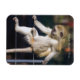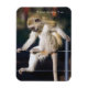 Imã de geladeira com retrato de um macaco sentado sobre uma cerca ao sol com o slogan "Eu acho, logo sou..."