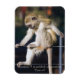 Imã de geladeira com retrato de um macaco sentado sobre uma cerca ao sol com o slogan "Às vezes eu me sento e penso, e às vezes eu apenas me sento."