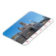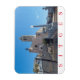 Uma bela vista da Igreja de Sant Bartomeu e dos Papais noeis Tecla na cidade de Sitges em Espanhas impressas em uma imã de geladeira de souvenir.