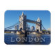 Uma bela fotografia da Tower Bridge em Londres num dia ensolarado, impressa numa imã de geladeira de souvenir.