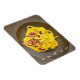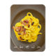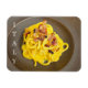Uma fotografia de perto do famoso prato italiano "espaghetti carbonara" impresso numa imã de geladeira de souvenir.